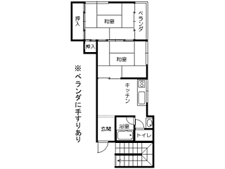 | 詳細間取 | 2DK (和6帖×1、洋6帖×1、DK4.5帖) | ||